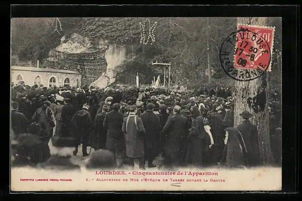 AK Lourdes, Cinquantenaire de l`Apparition, Allocution de Mgr l`Evêque de Tarbes devant la Grotte