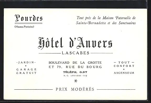 AK Lourdes, Hotel d'Anvers