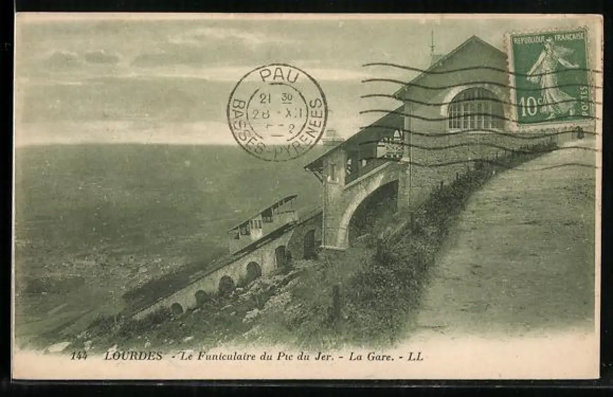 AK Lourdes, Le Funicolaire du Pic du Jer, La Gare, Bergbahn