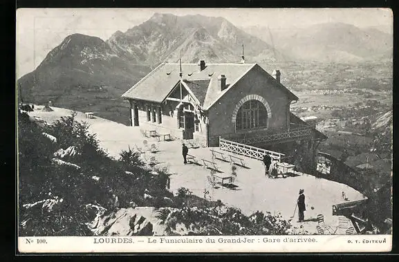 AK Lourdes, Le Funiculaire du Grand-Jer - Gare d`arrivèe