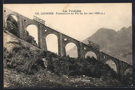 AK Lourdes, Les Pyrénées, Funiculaire du Pic du Jer, Bergbahn