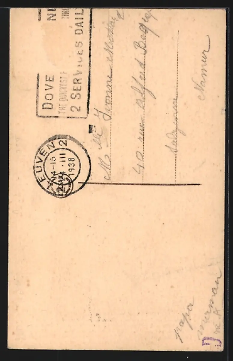 gelaufen 1938, Briefmarke entfernt, rückseitig Oberflächenschaden, guter Zustand
