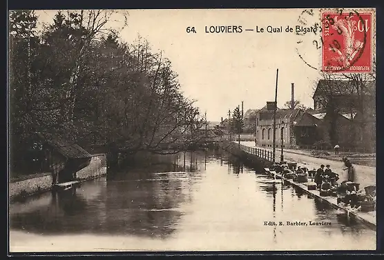 AK Louviers, Le Quai de Bigard avec vue sur la rivière et les bâtiments adjacents