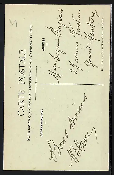 Personenbezogene Daten auf der Rückseite der Karte wurden durch blauen Textmarker unkenntlich gemacht. Die blauen Stellen sind auf die Vorderseite durchgeweicht und wirken sich negativ auf das Postkartenfoto aus
