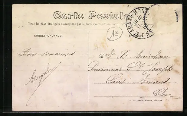 alte Ansichtskarte, gelaufen 1907, Stempelspur, Briefmarke entfernt, guter Zustand