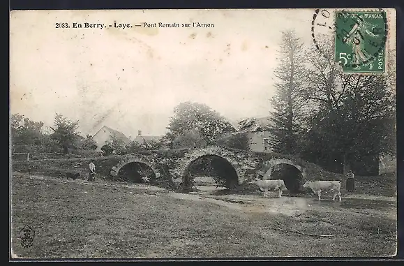 AK Loye, Pont Romain sur l`Arnon avec des vaches traversant le pont