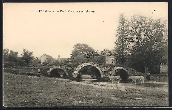 AK Loye, Pont Romain sur l`Arnon avec vaches traversant le pont