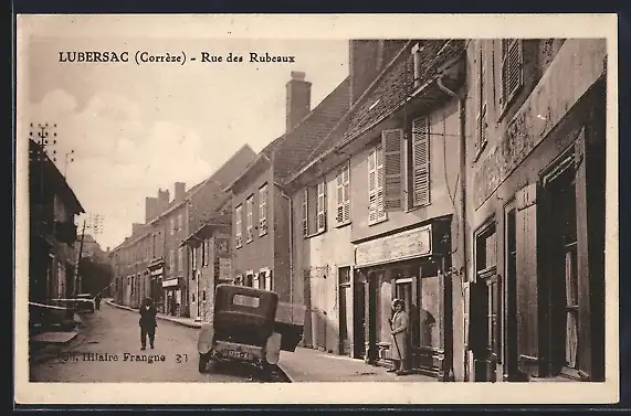 AK Lubersac, Rue des Rubeaux avec voiture et passants