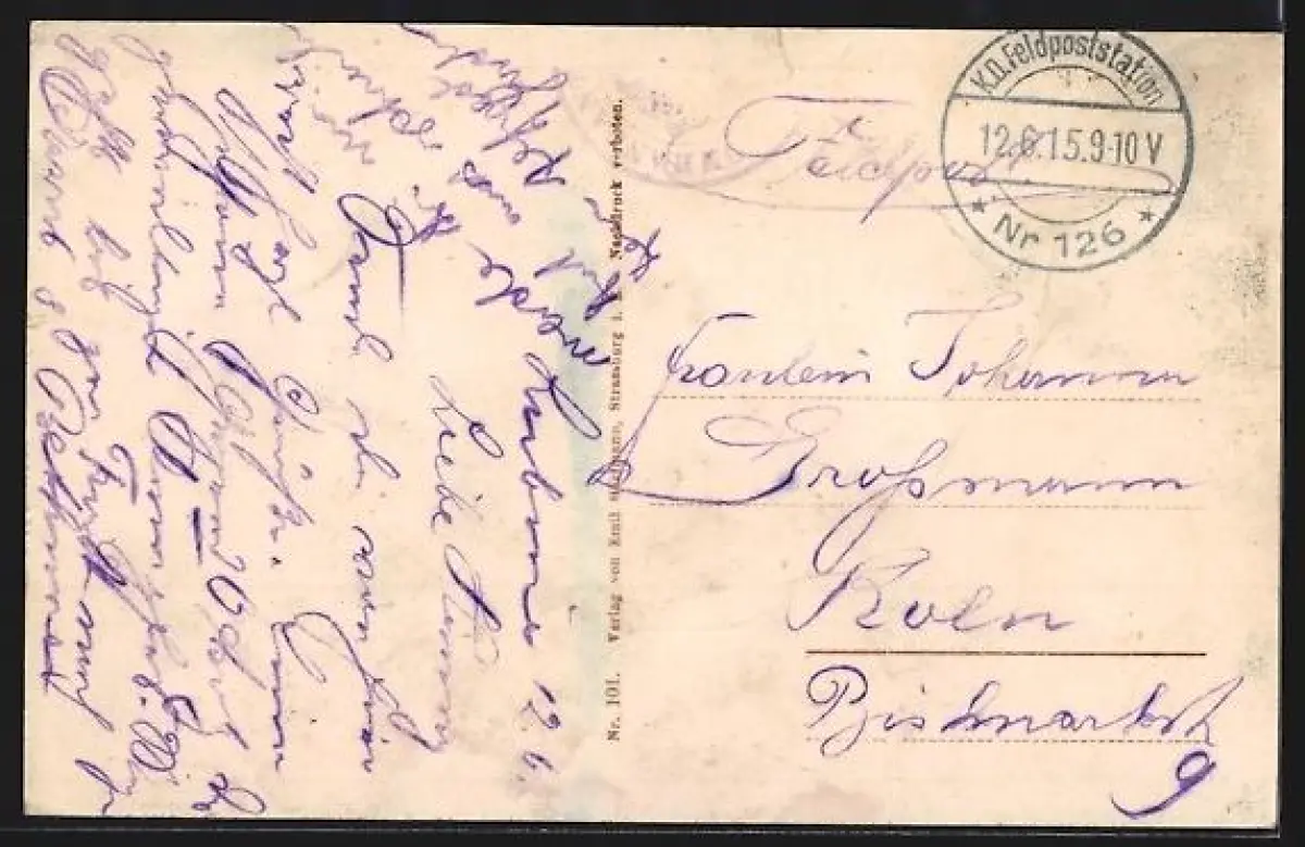 gelaufen 1915, kl. Einriss oben mitte, guter Zustand