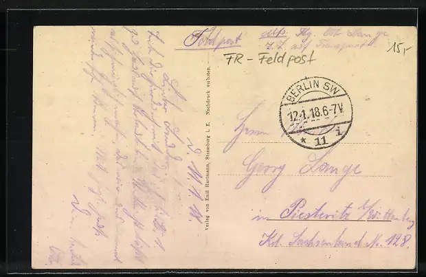 alte Ansichtskarte, gelaufen 1918 als Feldpost, guter Zustand