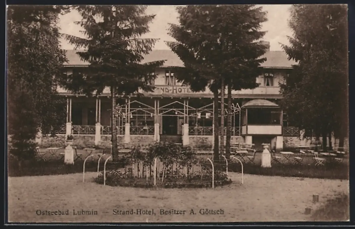 AK Lubmin, Strand-Hotel mit Gartenanlagen, Bes. A. Göttsch