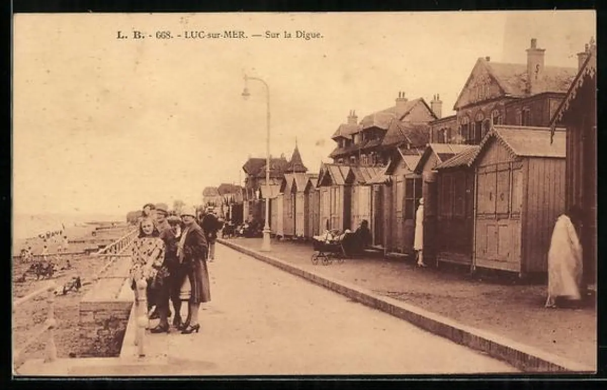 AK Luc-sur-Mer, Sur la Digue avec cabines de plage et promeneurs