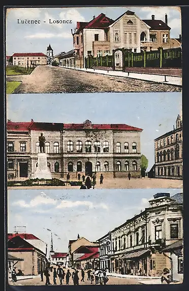 AK Lucenec, Strassenansichten, Platz mit Denkmal