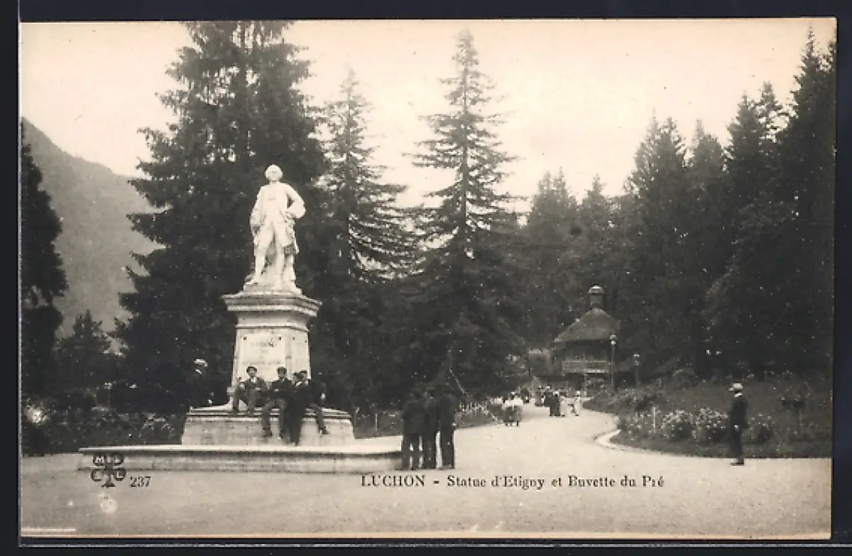 AK Luchon, Statue d`Étigny et Buvette du Pré
