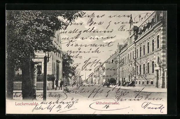 AK Luckenwalde, Partie in der Wilhelmstrasse, mit Litfasssäule