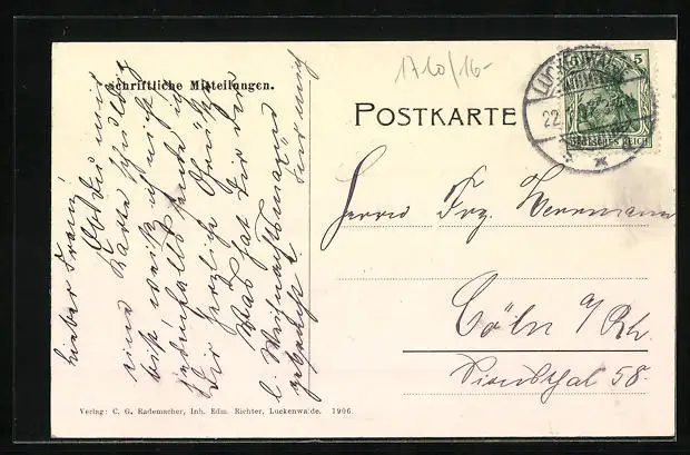 alte Ansichtskarte, gelaufen 1907, guter Zustand