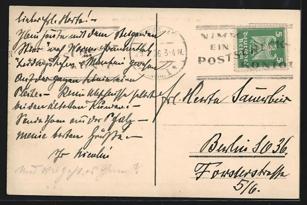 alte Ansichtskarte, gelaufen 1926, guter Zustand