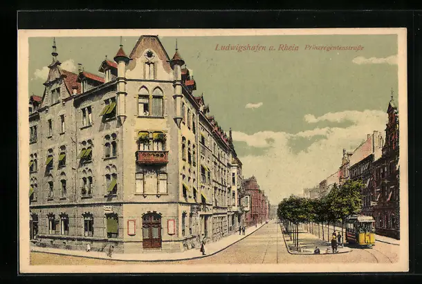 AK Ludwigshafen / Rhein, Prinzregentenstrasse mit Strassenbahn
