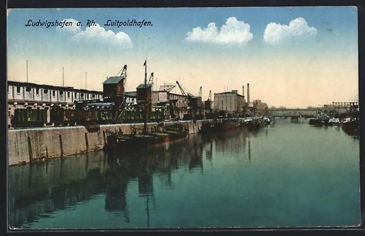 AK Ludwigshafen a. Rh., Luitpoldhafen, Hafenanlagen, Schiffe, Industriegebäude