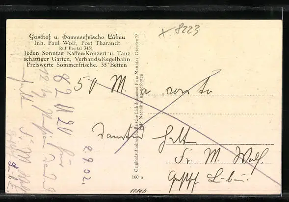 AK Lübau, Gasthaus und Pensions-Haus Gasthof Lübau von Paul Wolf