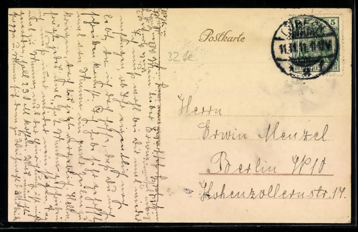 alte Ansichtskarte, gelaufen 1911, Stempelspur, guter Zustand