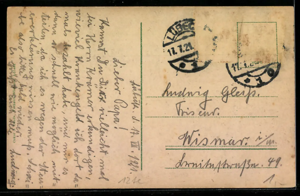 alte Ansichtskarte, gelaufen 1921, Briefmarke entfernt, guter Zustand