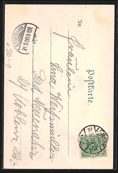 alte Ansichtskarte, gelaufen 1900, Eckknick li. unten, guter Zustand