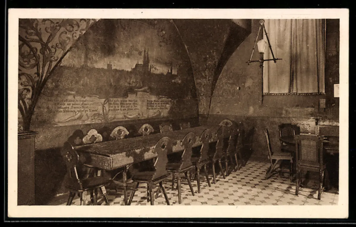 AK Lübeck, Im Ratsweinkeller, Wandgemälde