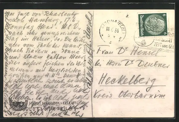 alte Ansichtskarte, gelaufen 1934, guter Zustand