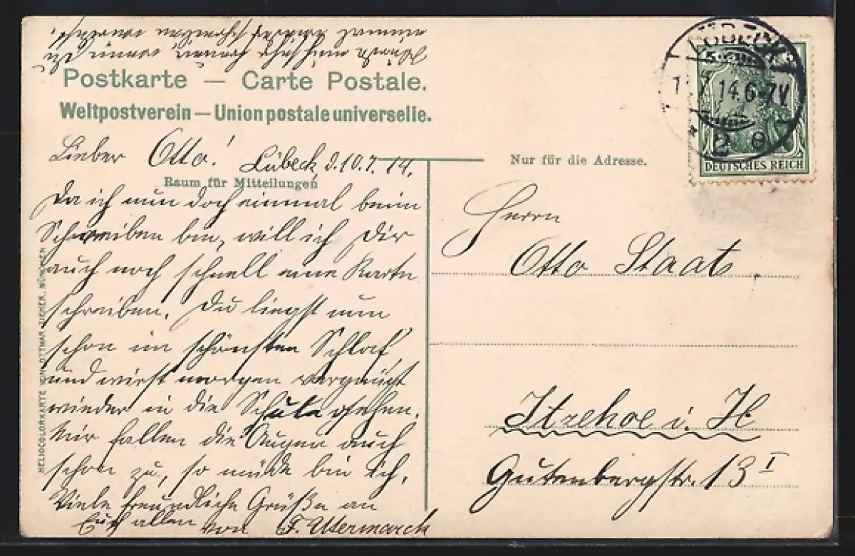 alte Ansichtskarte, gelaufen 1914, guter Zustand