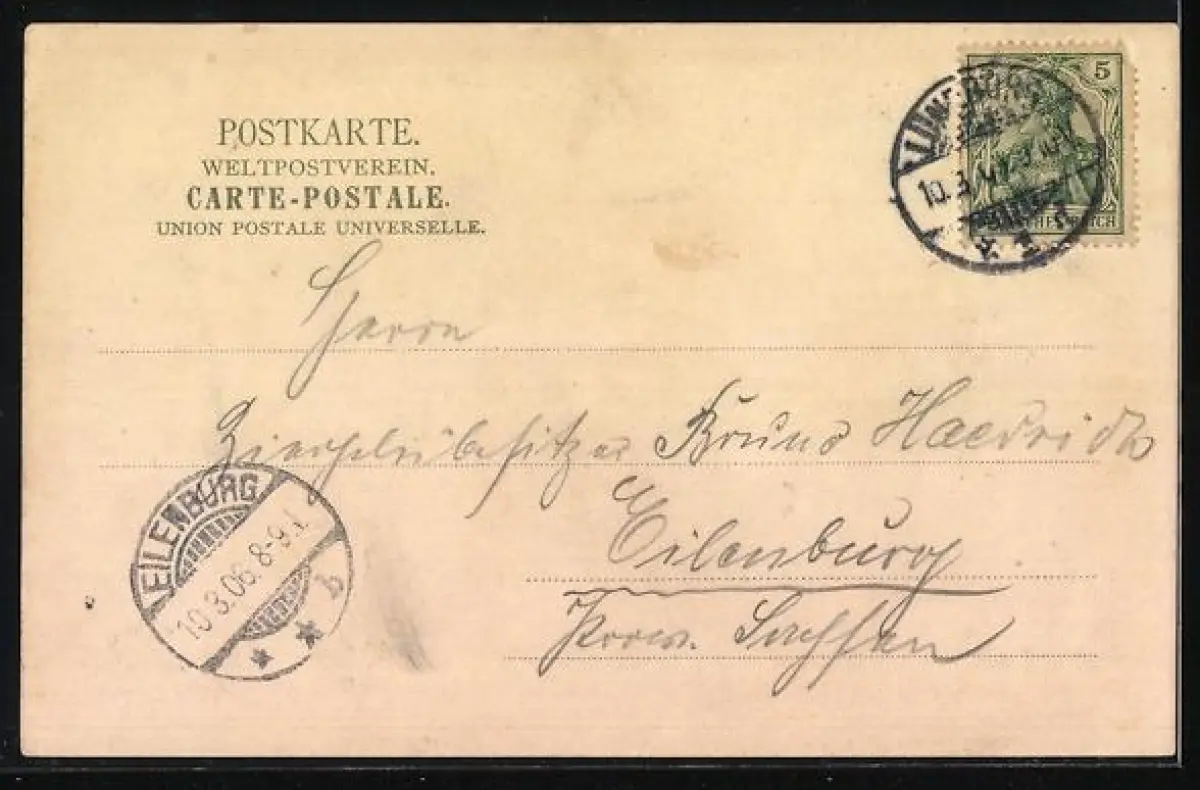 alte Ansichtskarte, gelaufen 1906, Stempelspur, guter Zustand