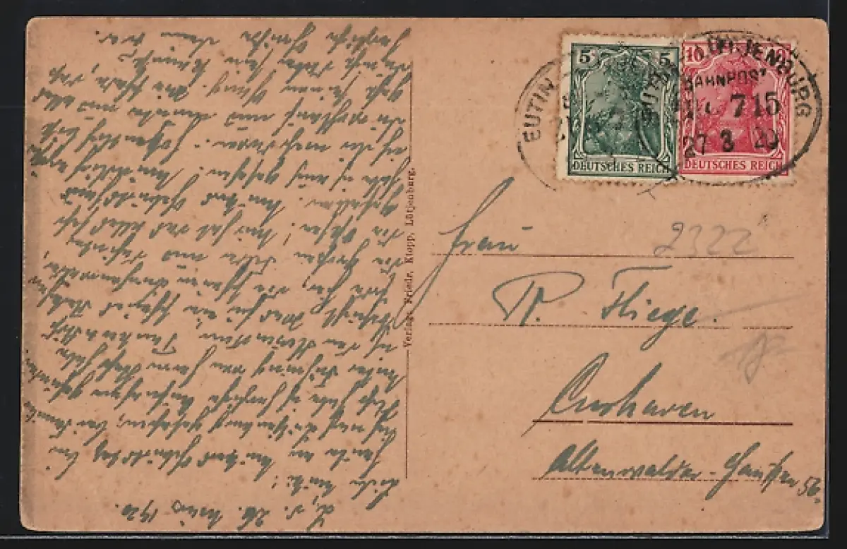 alte Ansichtskarte, gelaufen 1920, Eckknick rechts unten, guter Zustand