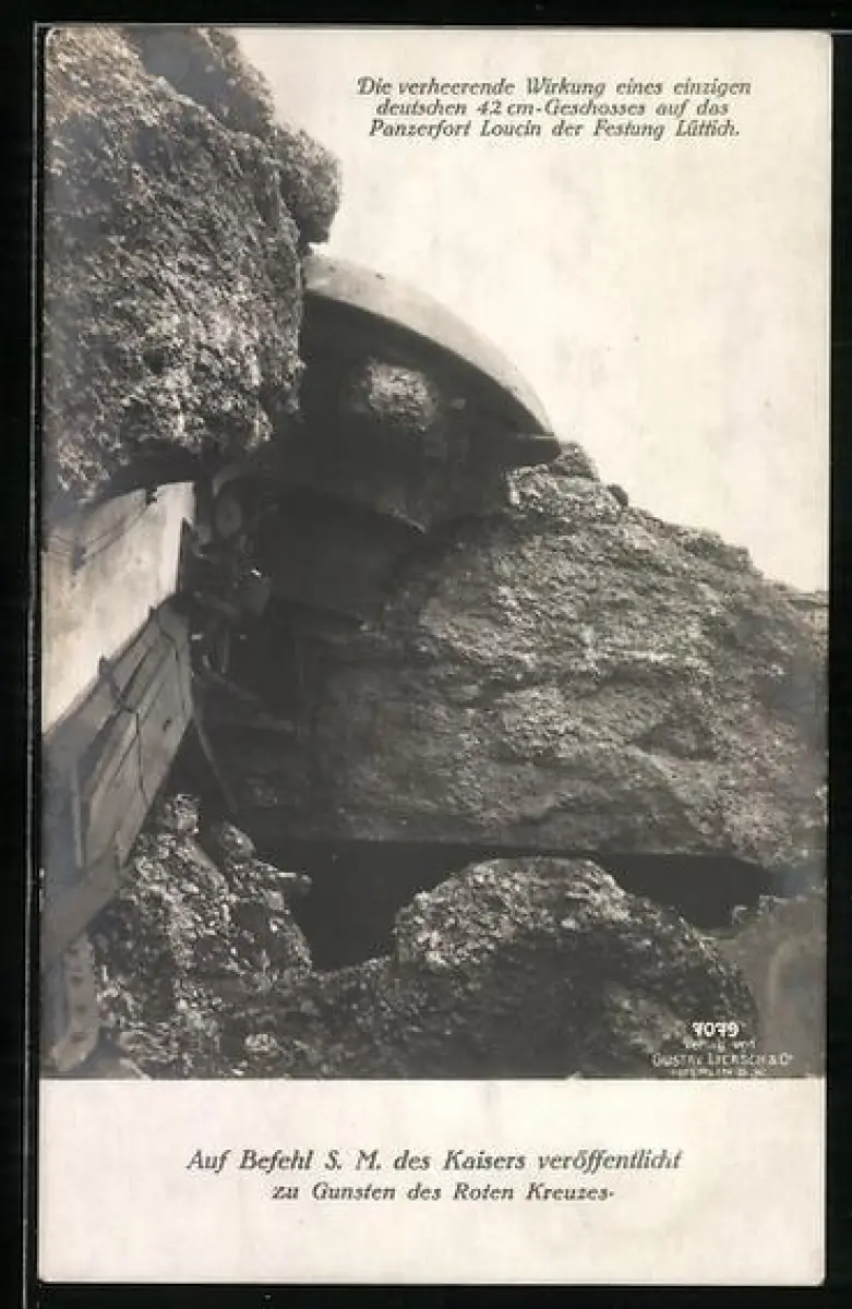 AK Lüttich, die verheerende Wirkung eines deutschen 42 cm Geschosses auf das Panzerfort Loucin