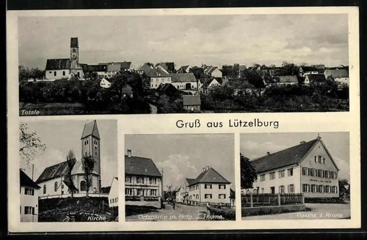 AK Lützelburg, Gasthaus Zur Krone, Totalansicht, Kirche, Ortspartie