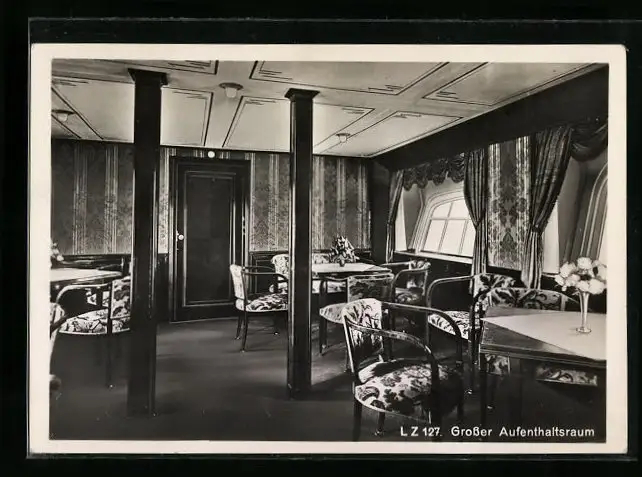 AK Luftschiff Zeppelin 127, Grosser Aufenthaltsraum, Innenansicht