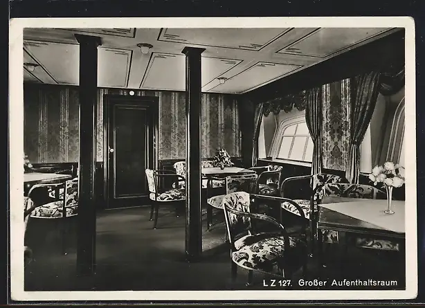 AK Luftschiff Zeppelin 127, Grosser Aufenthaltsraum, Innenansicht