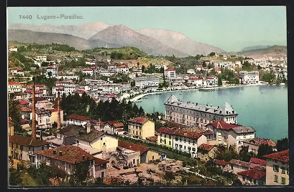 AK Lugano-Paradiso, Ortsansicht aus der Vogelschau