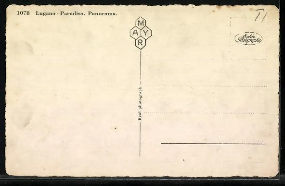 AK Lugano-Paradiso, Stadtpanorama mit Bergbahn aus der Vogelschau