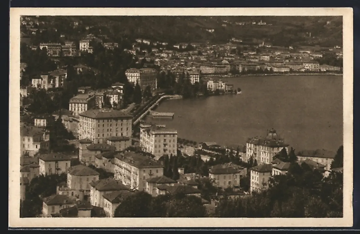 AK Lugano-Paradiso, Totalansicht mit Quai aus der Vogelschau