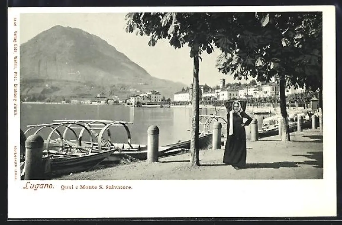 AK Lugano, Quai e Monte S. Salvatore, Frau mit Lasten auf dem Rücken