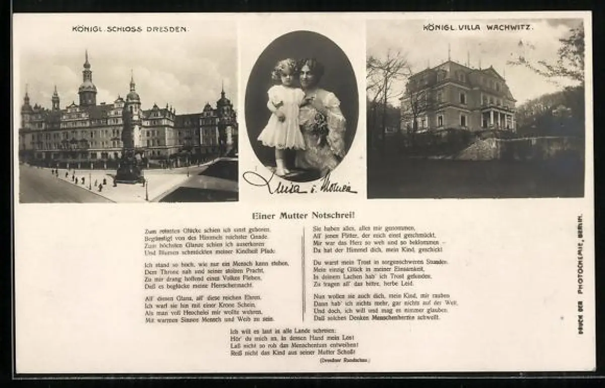 AK Luise von Sachsen mit ihrer Mutter im Portrait, kgl. Schloss Dresden und Villa Wachwitz