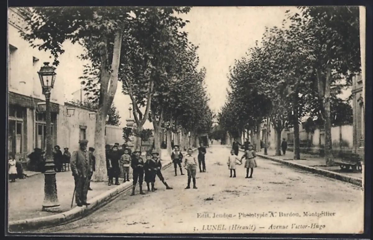 AK Lunel /Hérault, Avenue Victor-Hugo avec des passants et des arbres alignés