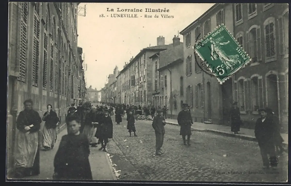 AK Lunéville, Rue de Villers animée avec passants et bâtiments historiques