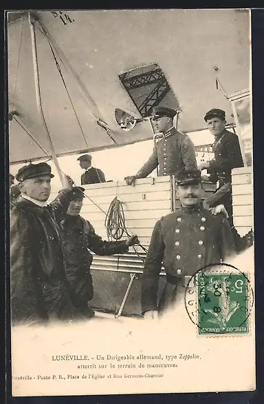 AK Lunéville, Un Dirigeable allemaand, type Zeppelin, atterrit sur le terrain de manoeuvres