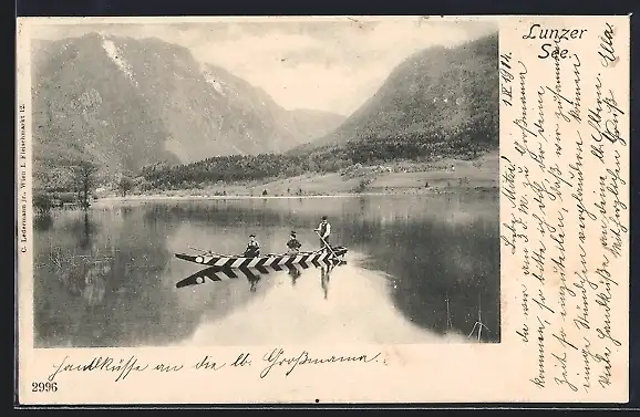 AK Lunz am See, Zwei junge Damen im Ruderboot