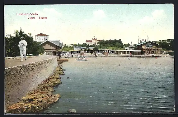 AK Lussinpiccolo, Cigale, Partie am Seebad