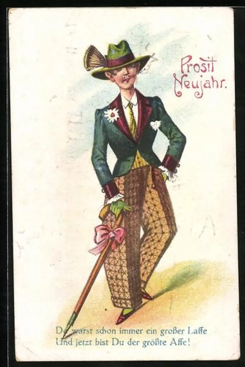 AK Lustiger Mann mit Gehstock, Neujahrsgruss, Scherz