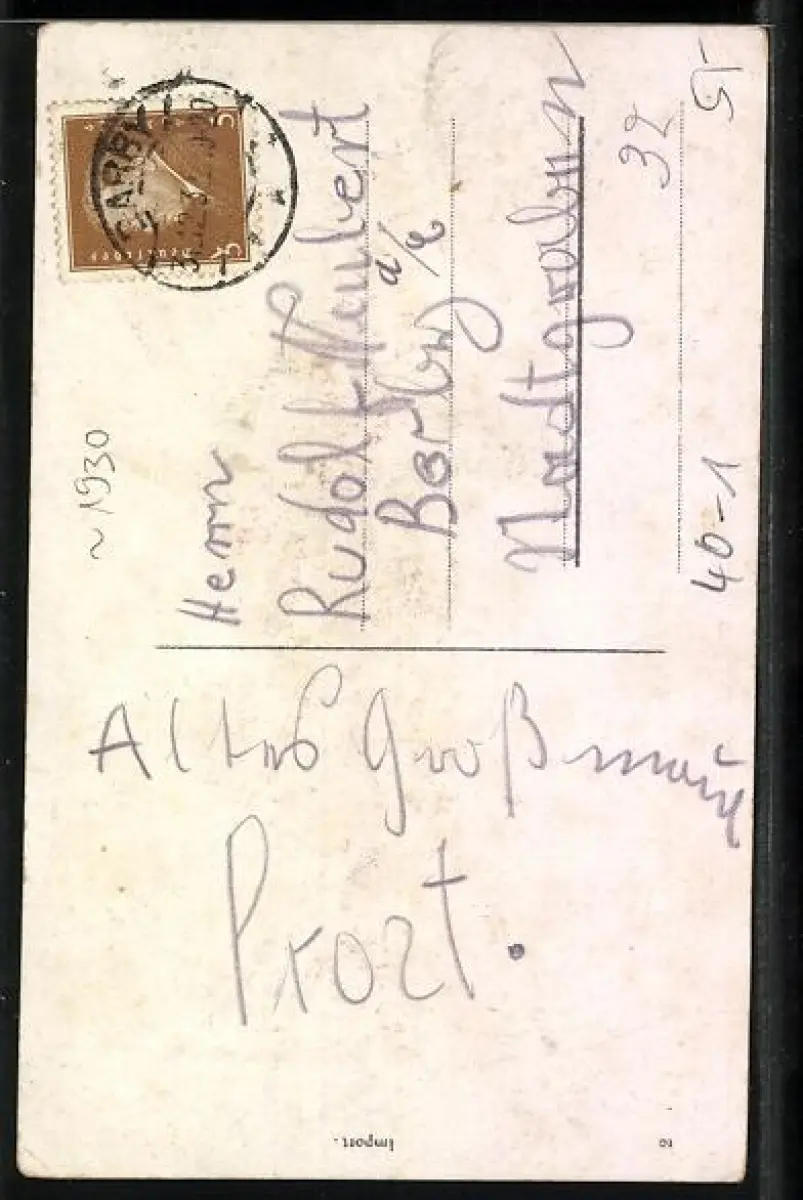 alte Ansichtskarte, gelaufen, Eckknicke re. unten u. li., guter Zustand