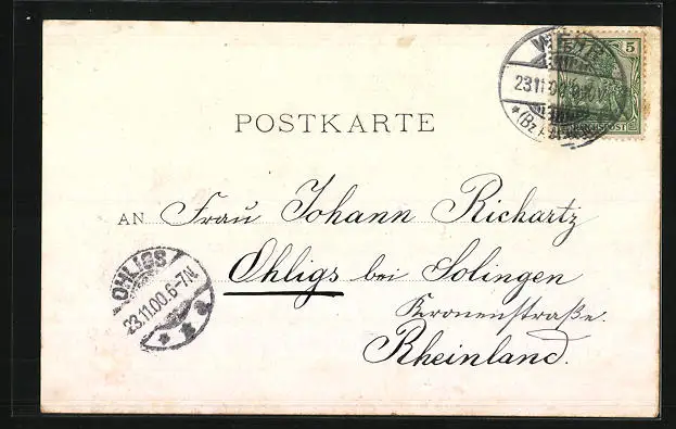 alte Ansichtskarte, gelaufen 1900, guter Zustand
