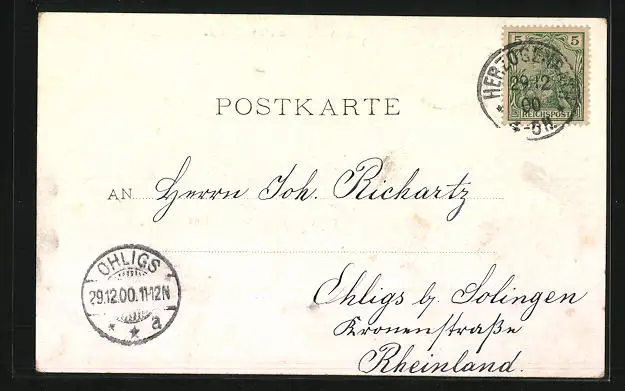alte Ansichtskarte, gelaufen 1900, guter Zustand